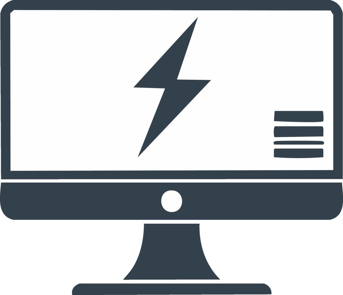 Desktop Computer Displaying Thunderbolt with Data Layers and Horizontal Lines Pro Vector