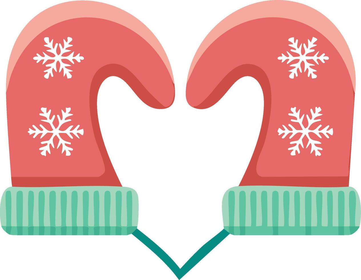 Heart shaped red winter mittens with snowflake patterns for cold weather Pro Vector