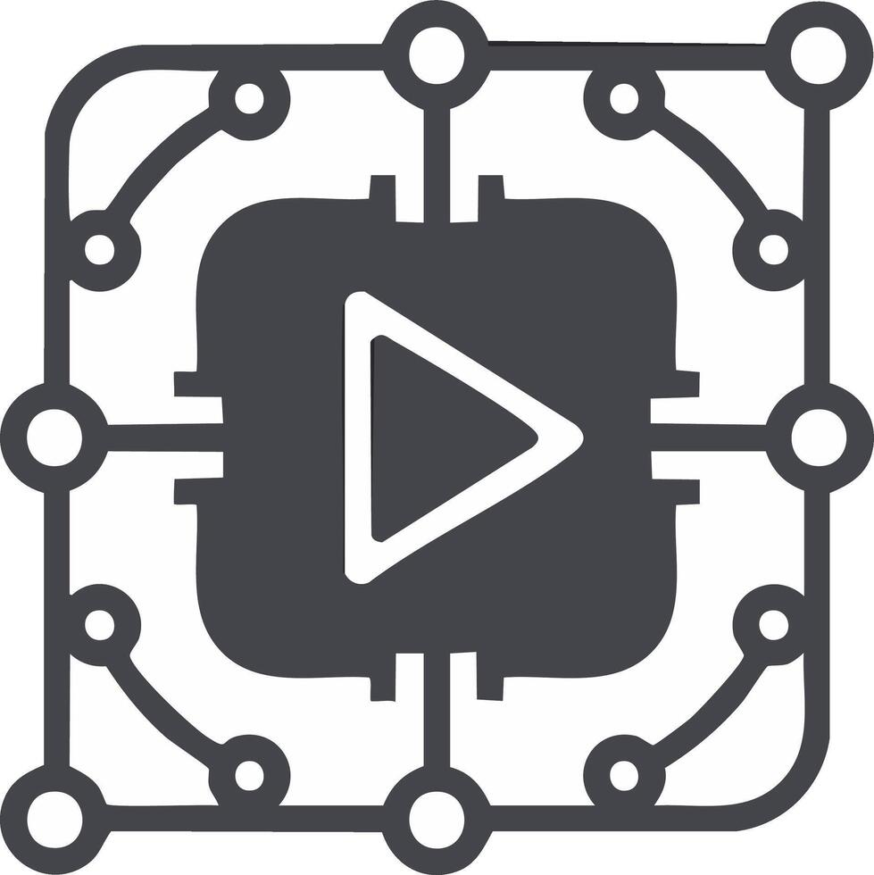 Digital Processing Concept. Chip with Play Symbol Integrated into a Circuitry Pro Vector
