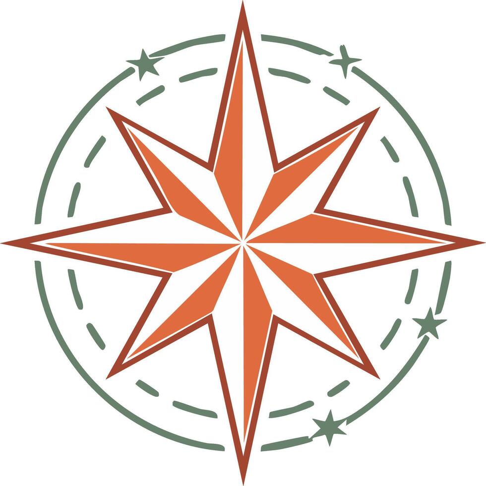 Compass Rose with Stars and Dashed Circular Guide, Navigation Aid Pro Vector