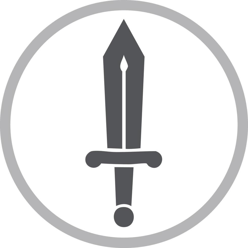 Stylized gray sword icon within a circular frame representing power combat and fantasy Pro Vector
