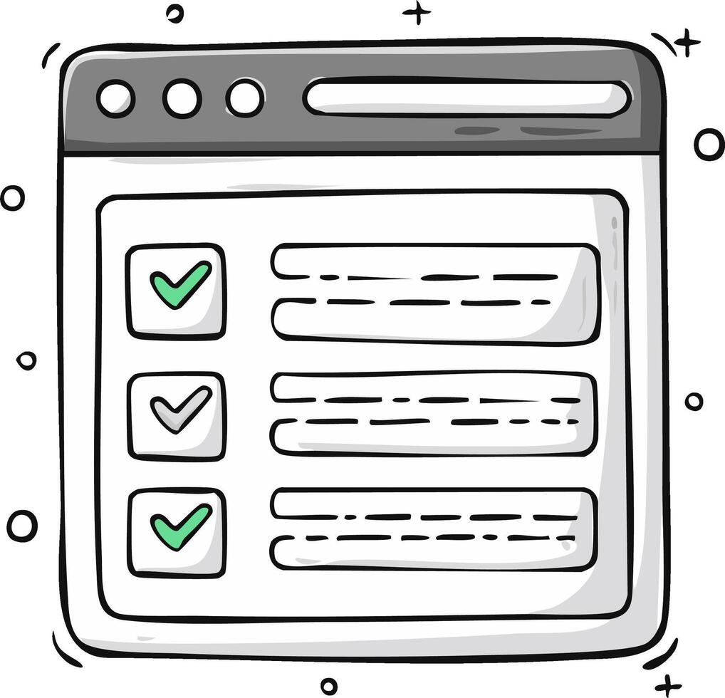 Hand Drawn List in Browser with Checkmarks and Text Fields Illustration Pro Vector