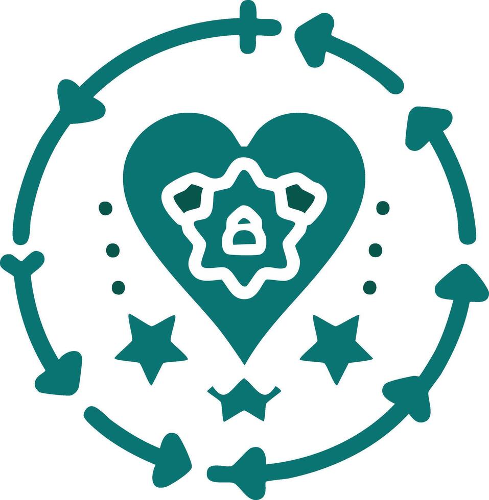 Teal heart icon with circular arrows and stars representing a continuous cycle of care progress and well being Pro Vector
