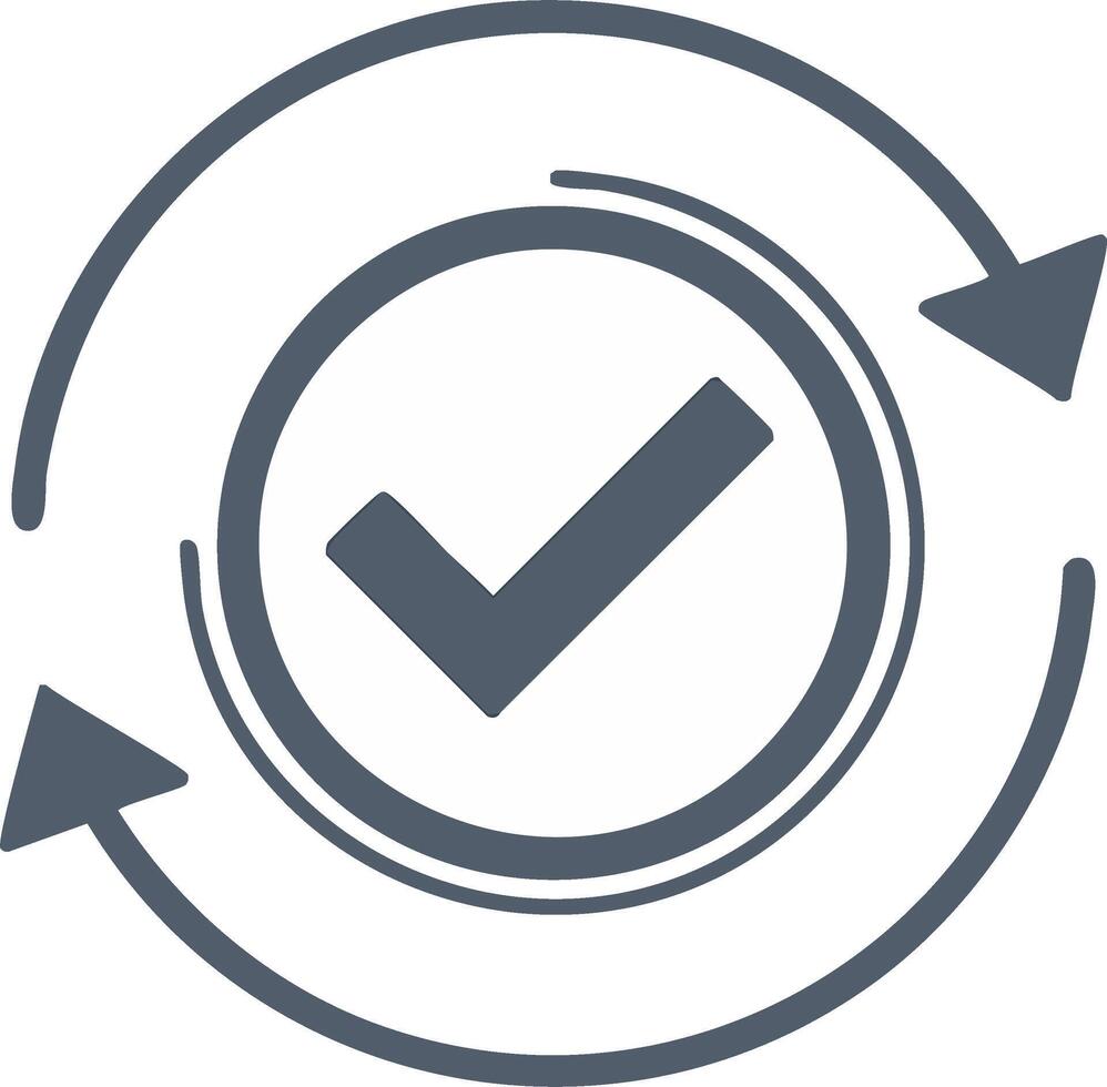Check mark in circle with arrows representing approval or confirmation Pro Vector