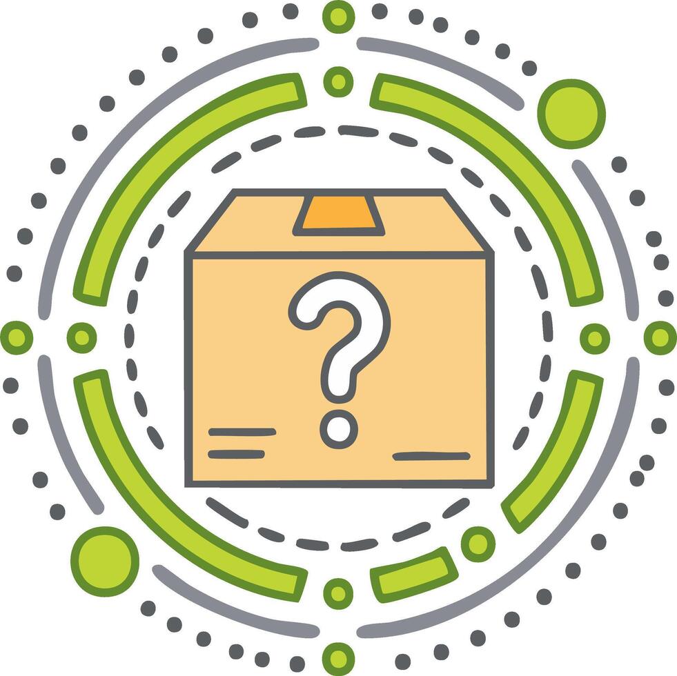 Unknown Parcel Box with Question Mark Icon Surrounded by Abstract Digital Data Flow Information Graphic Pro Vector