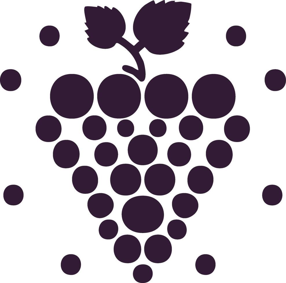 Stylized Dark Purple Grape Cluster Icon Created from Circles with Leaves and Scattered Dots Pro Vector