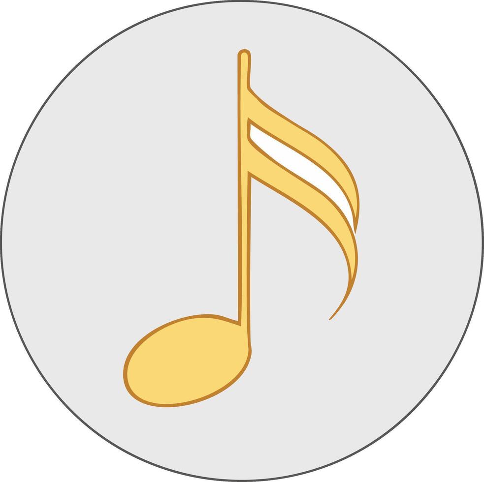 A single golden eighth note symbol with two flags is depicted within a light gray circle on a muted gray background Pro Vector