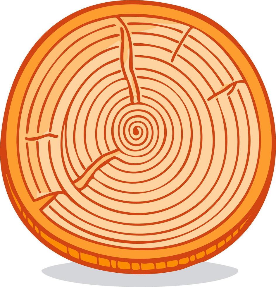 Cartoon cross section of a tree trunk with cracks and rings representing age Pro Vector