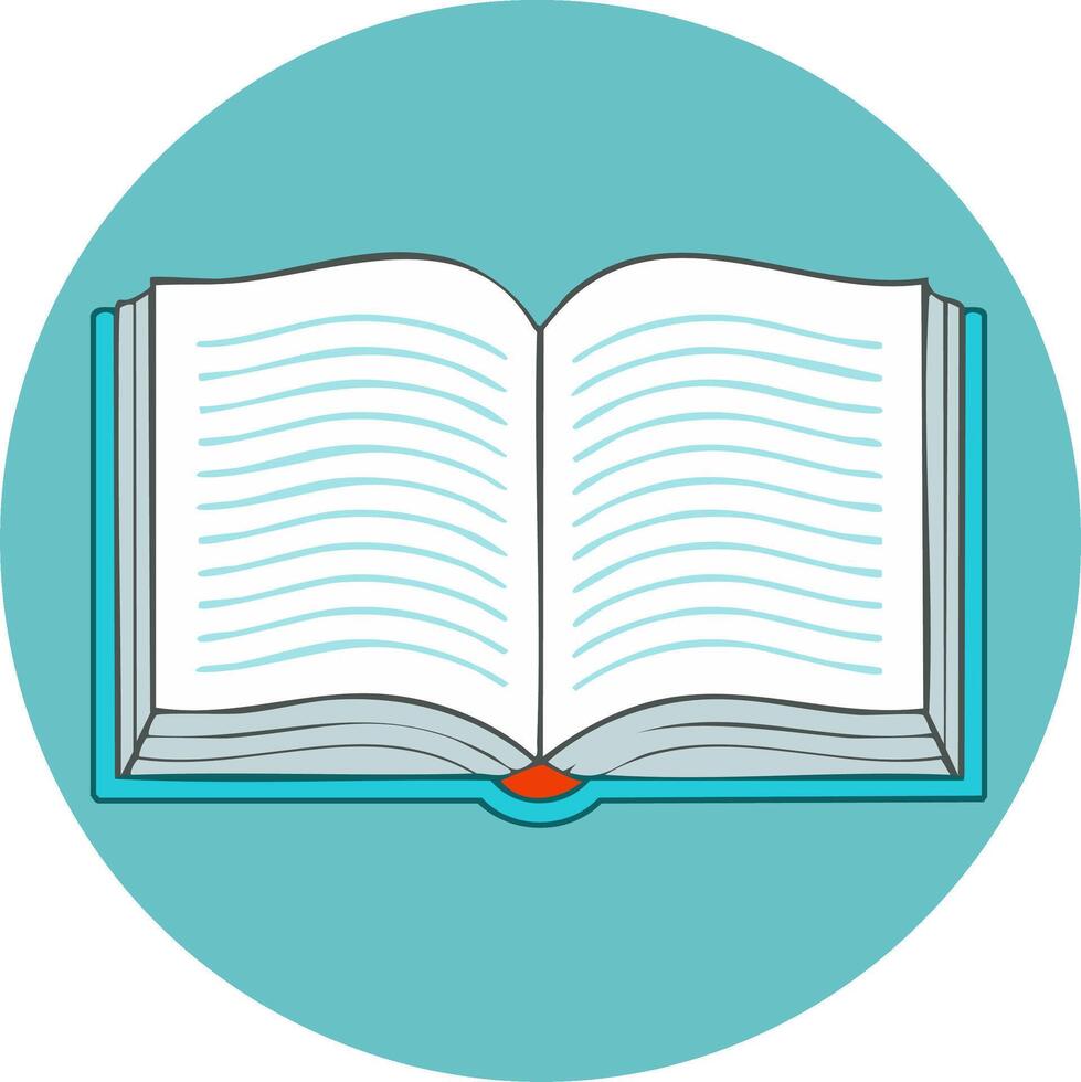 Illustrated open book icon with text pages for education learning and reading concepts Pro Vector