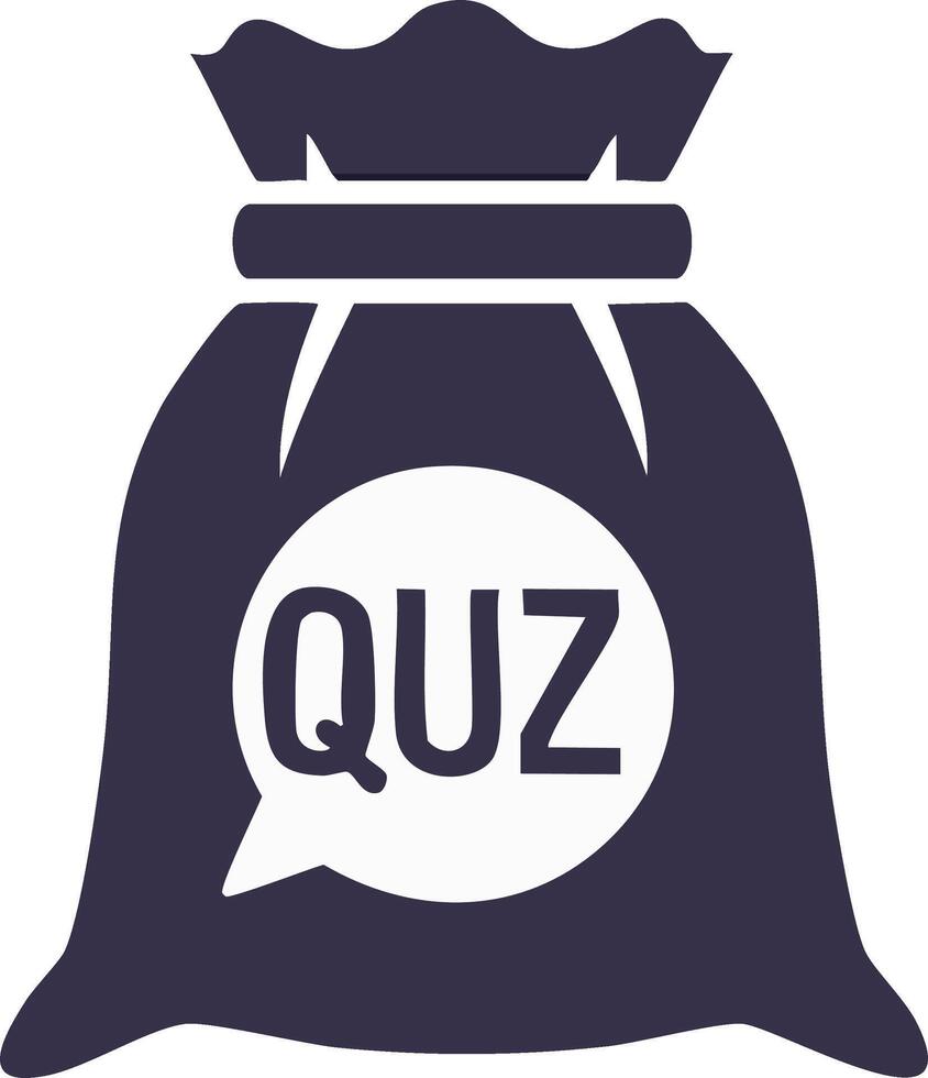 Sack icon with QUZ text inside a speech bubble for quiz game Pro Vector