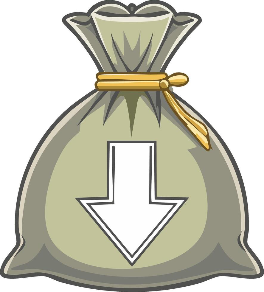 Bagged Arrow Down Symbol Cartoon Style Decrease Concept, Illustration Pro Vector