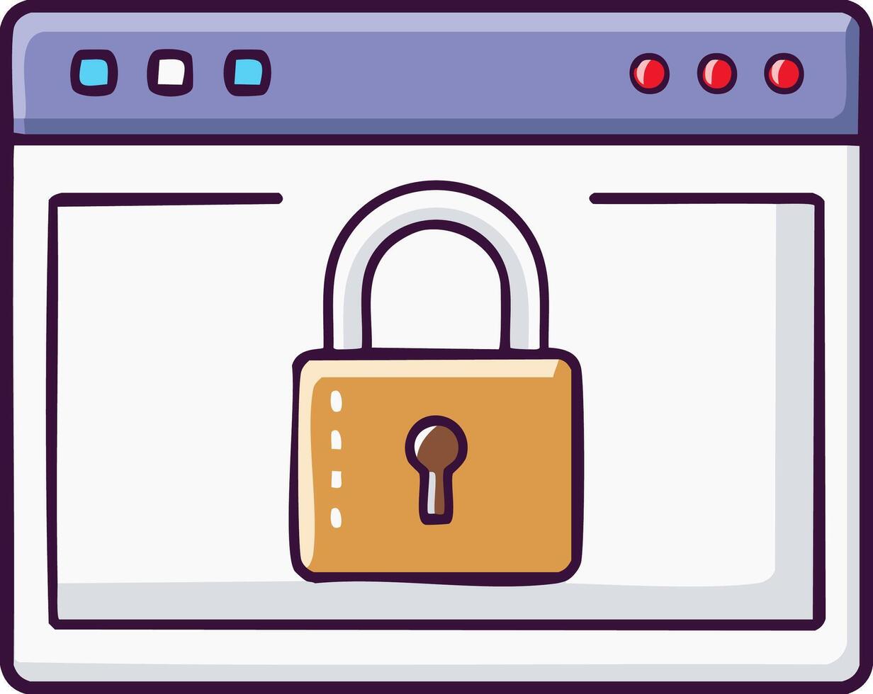 Secure web browsing application interface with closed padlock icon illustrating digital safety Pro Vector
