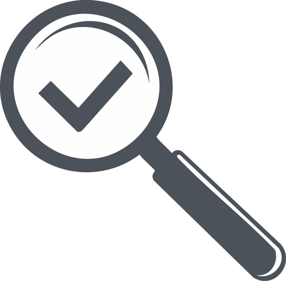 Magnifying glass search with check mark. Research icon for data verification and approval, quality symbol illustration Pro Vector