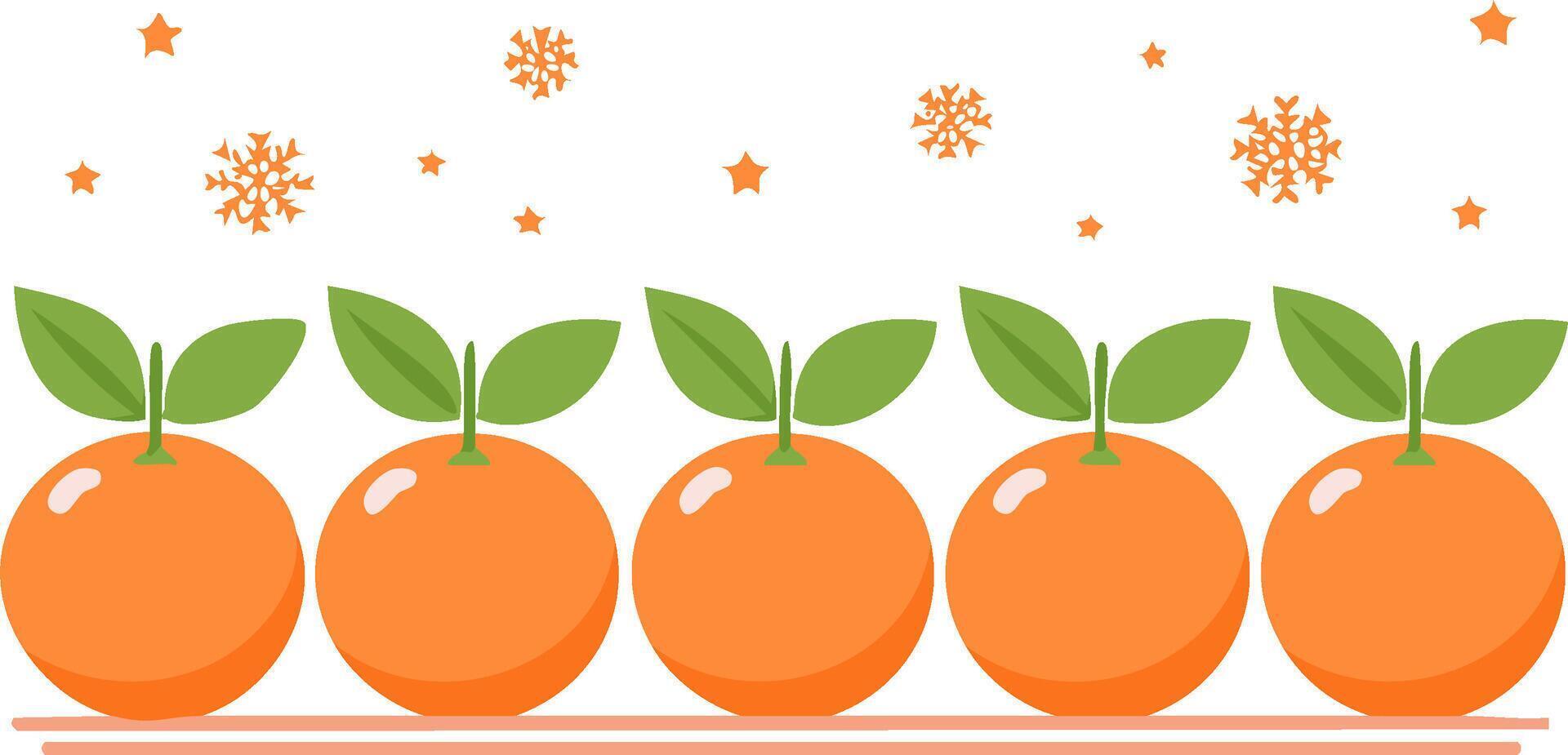 Oranges with Leaves Arranged in a Row with Star and Snowflake Decoration Pro Vector