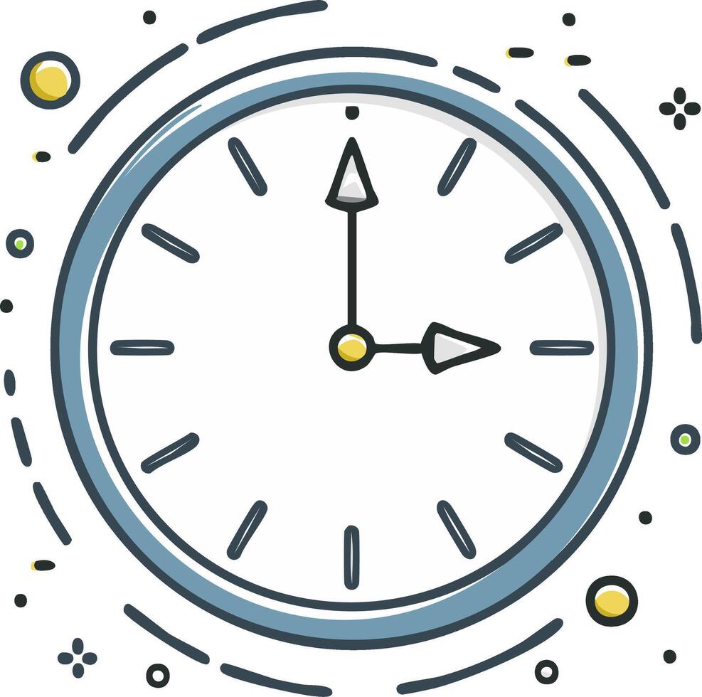 Clock Icon Showing Three o'Clock with Minute and Hour Hands and Modern Abstract Design Pro Vector