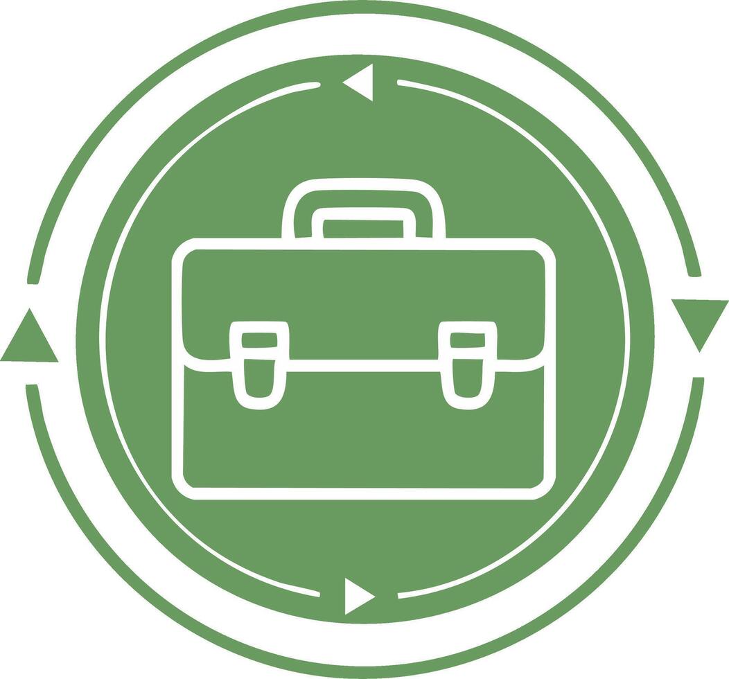 Green briefcase icon with cyclical arrows representing business workflow and career development Pro Vector