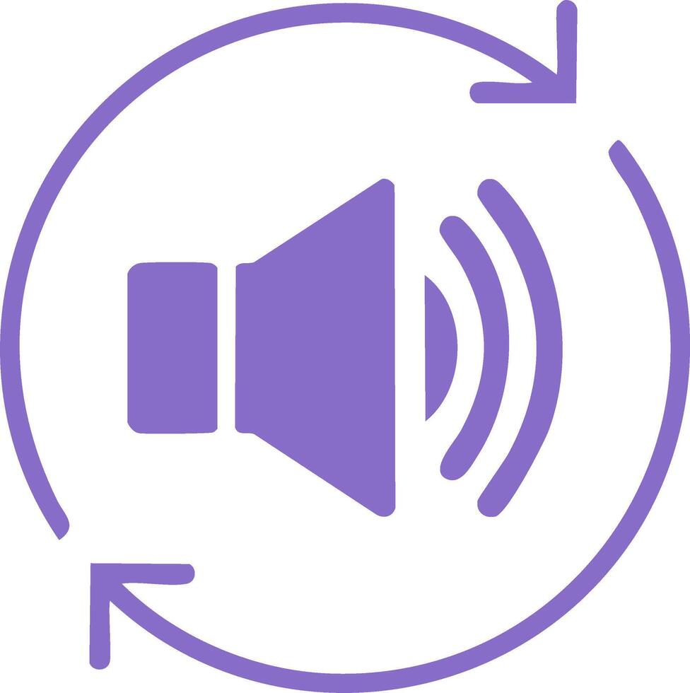 Circular arrow symbol with a purple speaker icon representing audio loop or repeat function Pro Vector
