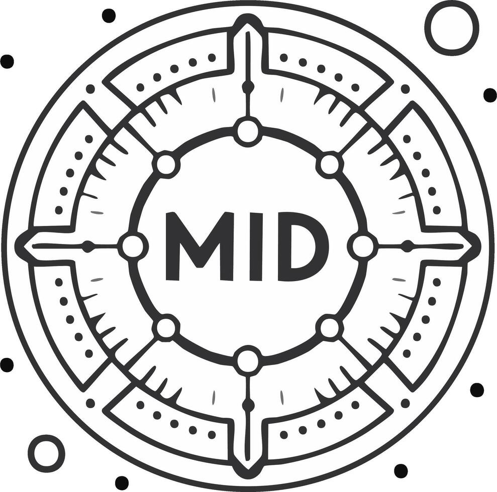 Abstract futuristic compass dial with MID text and geometric precision art Pro Vector