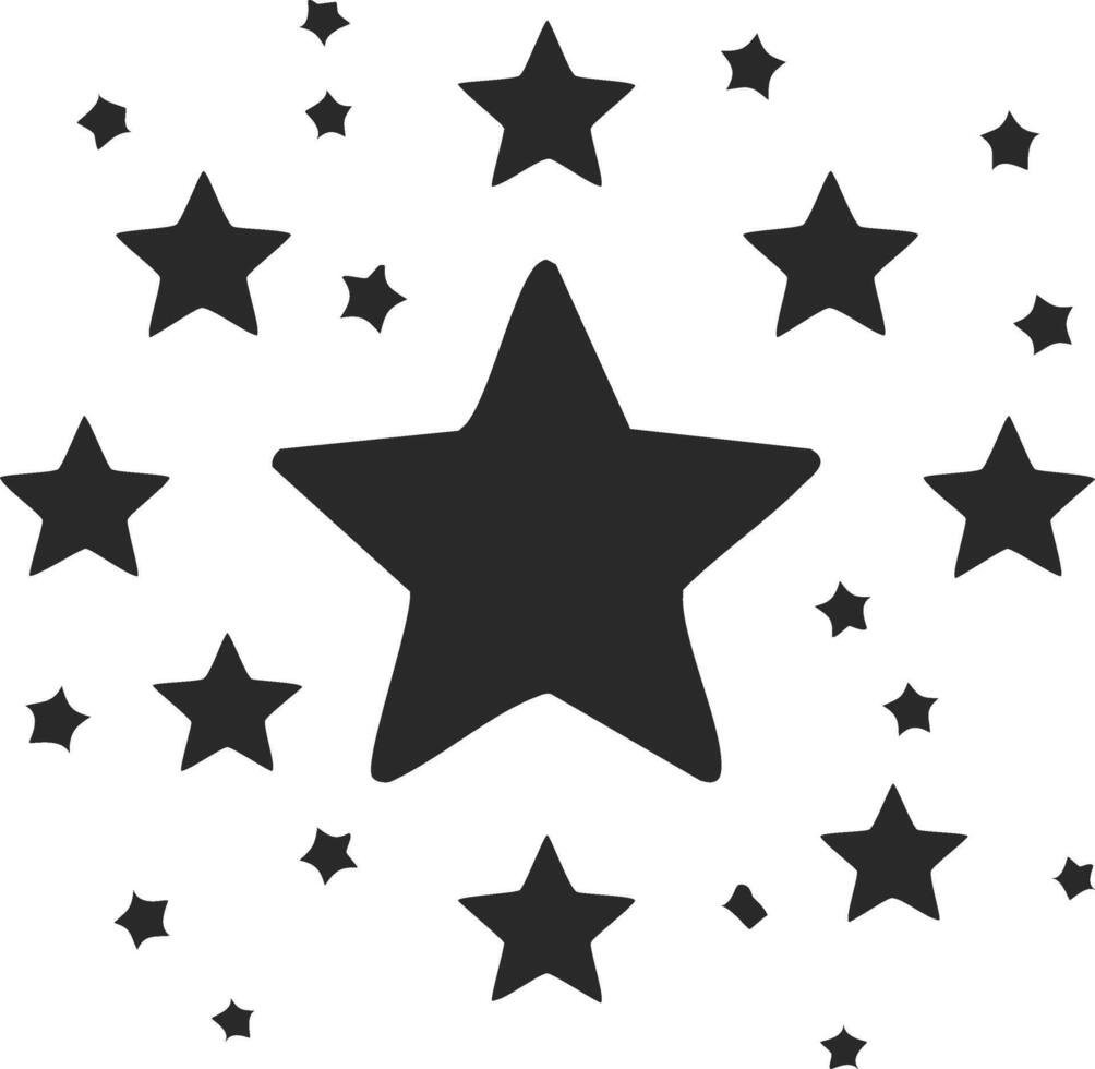 Simple black star icon set with various sizes arranged in a circular cluster graphic Pro Vector
