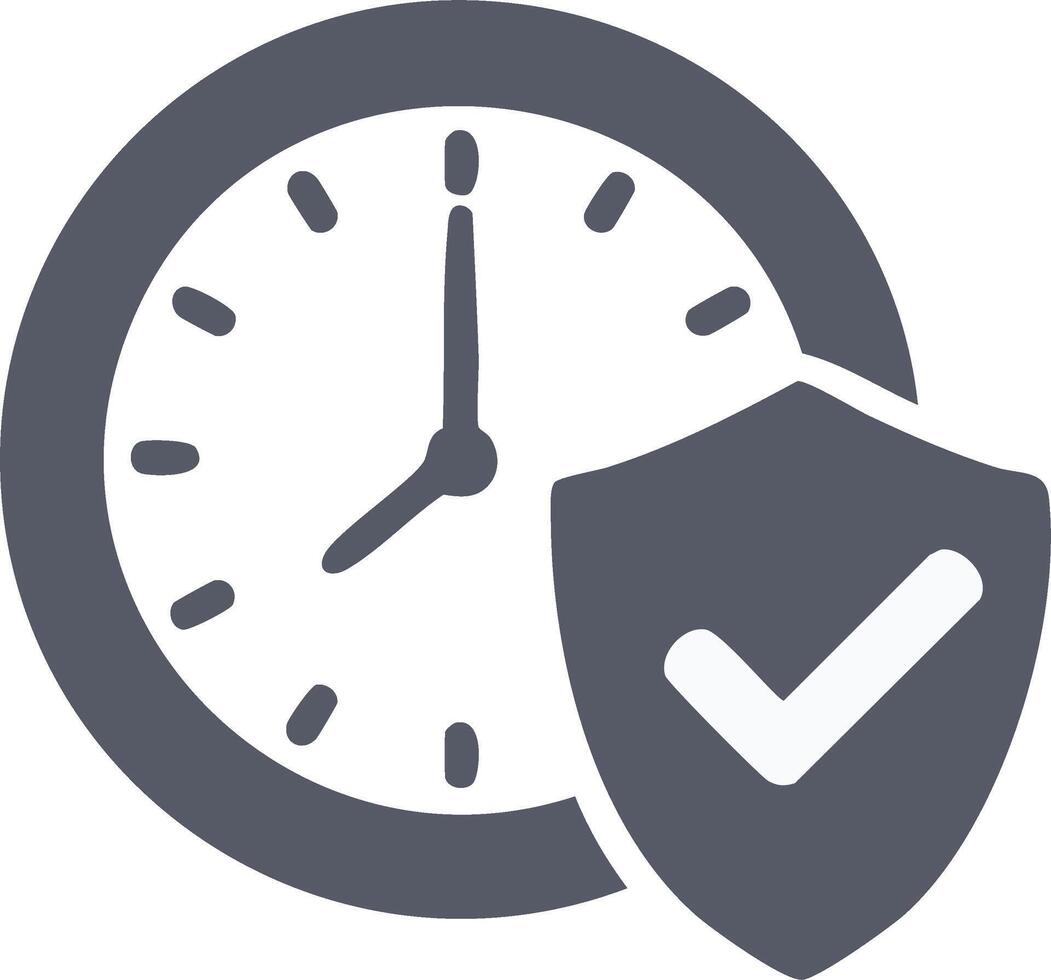 Secure time management symbol with a clock and shield checkmark representing assured safety Pro Vector