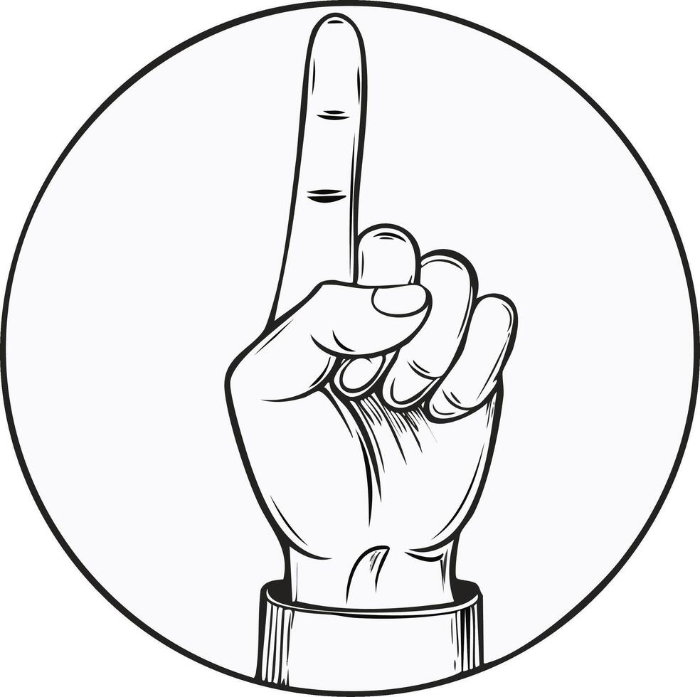 Hand with index finger pointing up inside a circle Pro Vector