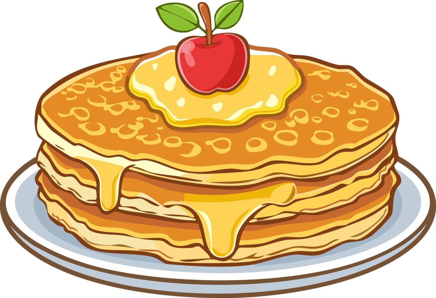 Stack of Pancakes Drizzled with Syrup and a Red Apple on Top of a Plate Breakfast Pro Vector