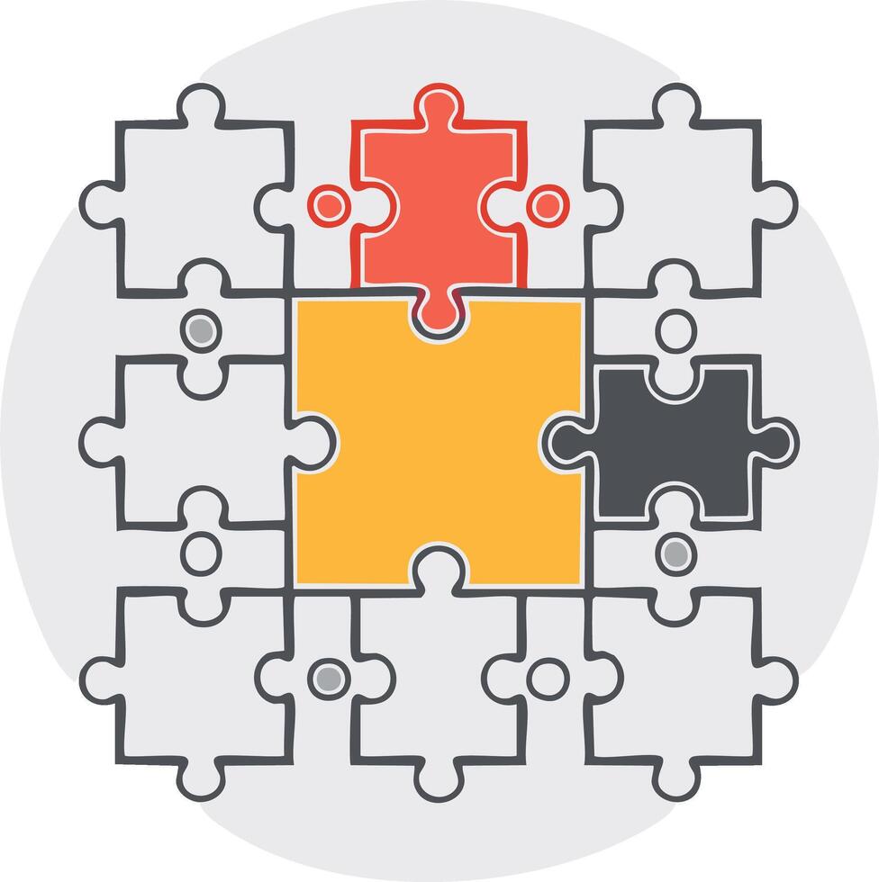 Conceptual illustration of a team assembling a project with one unique solution puzzle piece Pro Vector