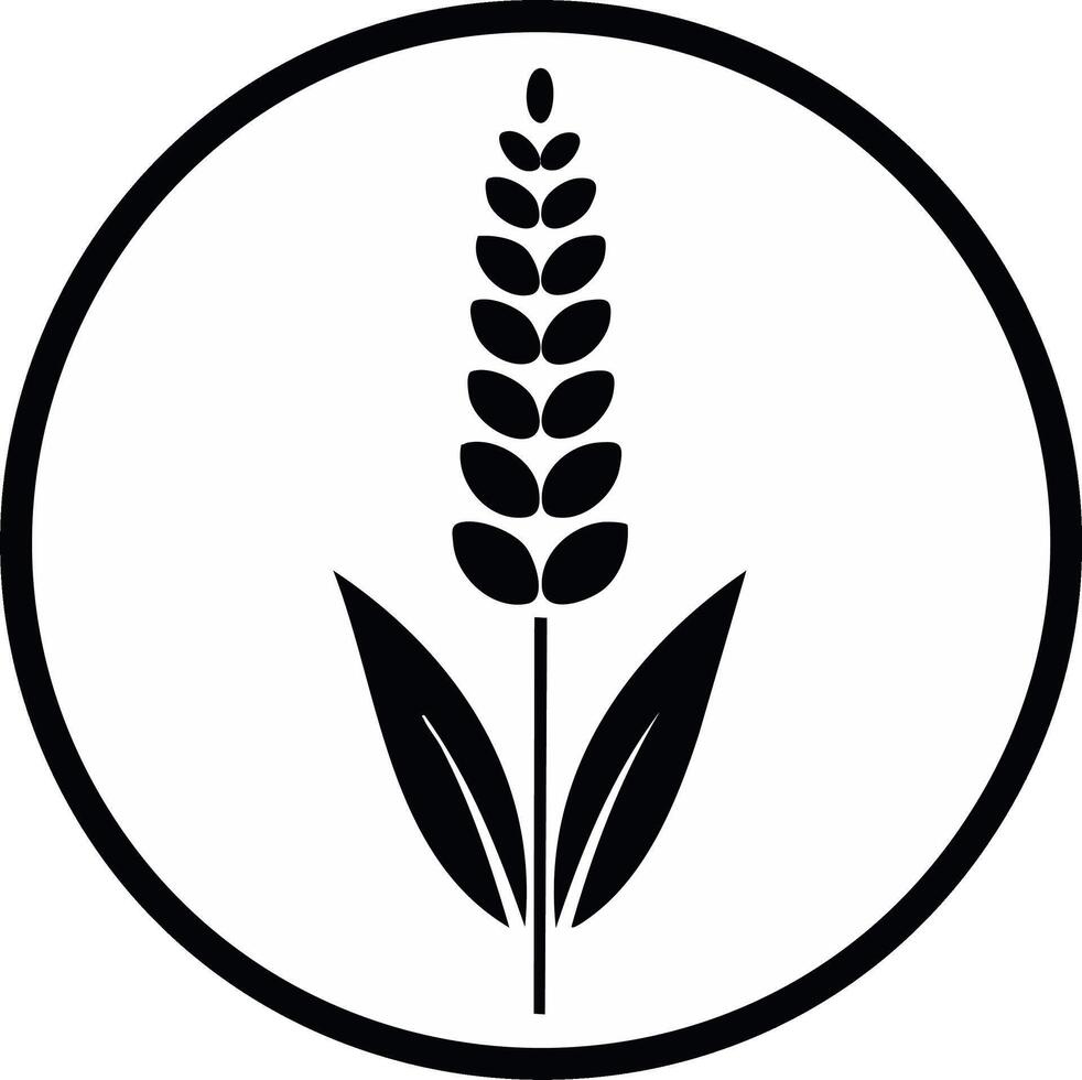Black and white stylized graphic of a wheat stalk with leaves inside a circle Pro Vector
