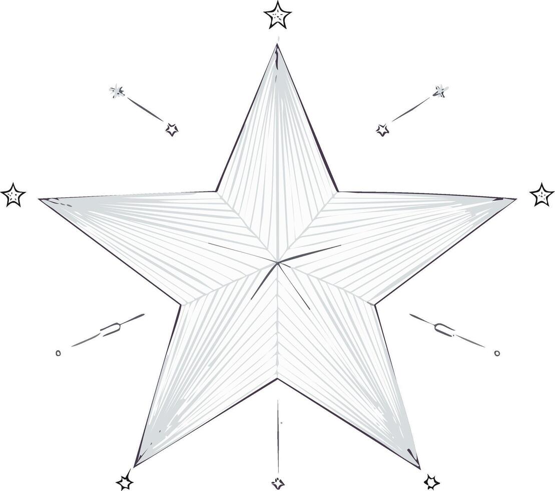 Shiny star shape with rays and little stars, handdrawn geometric elements on white background Pro Vector