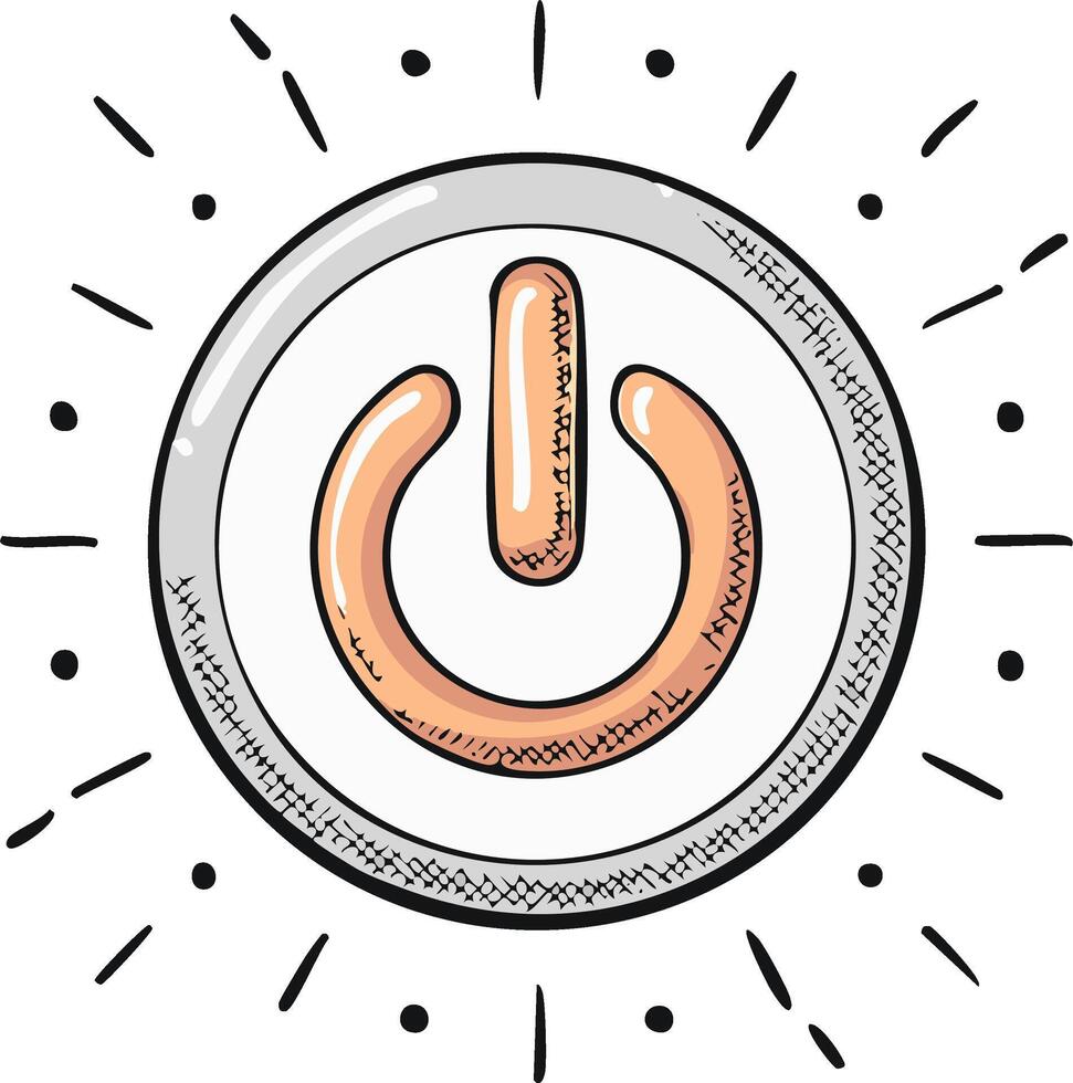 Hand drawn illustration power on off button shining with rays and light coming from the electronic device for technology concept Pro Vector