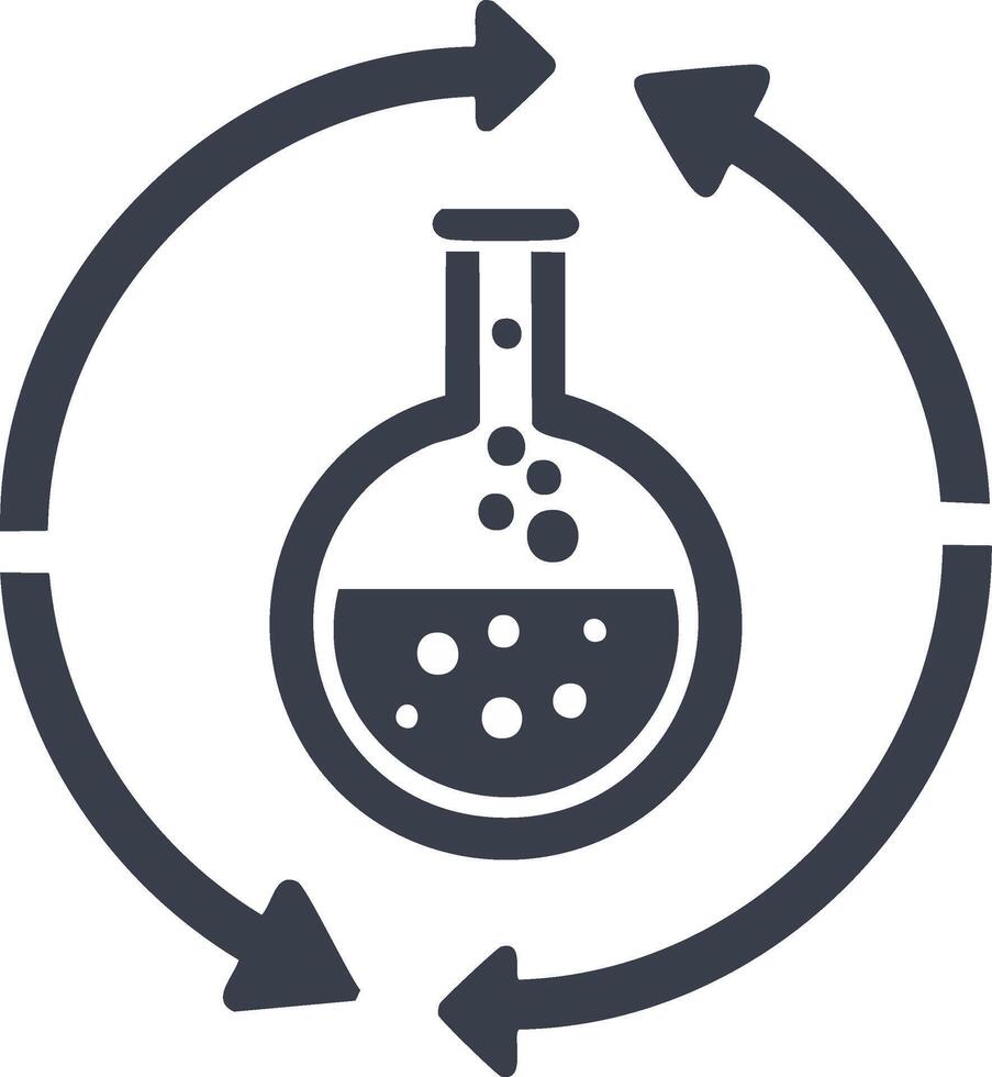 Chemistry process icon with lab flask and circular arrows for continuous research and development Pro Vector