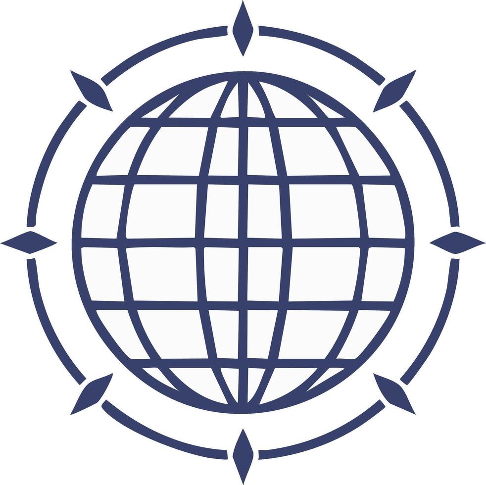 Circular Globe with Diamond Compass Points Navigating the World Icon Pro Vector