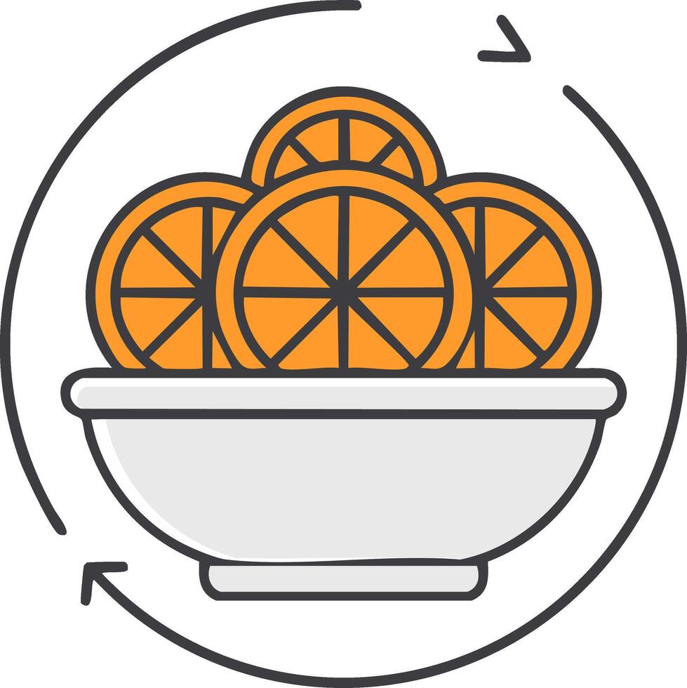 Bowl of citrus fruit slices with circular arrows indicating a cycle or refresh concept Pro Vector