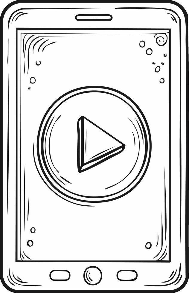 Hand drawn smartphone with play button icon on screen for streaming and mobile entertainment Pro Vector
