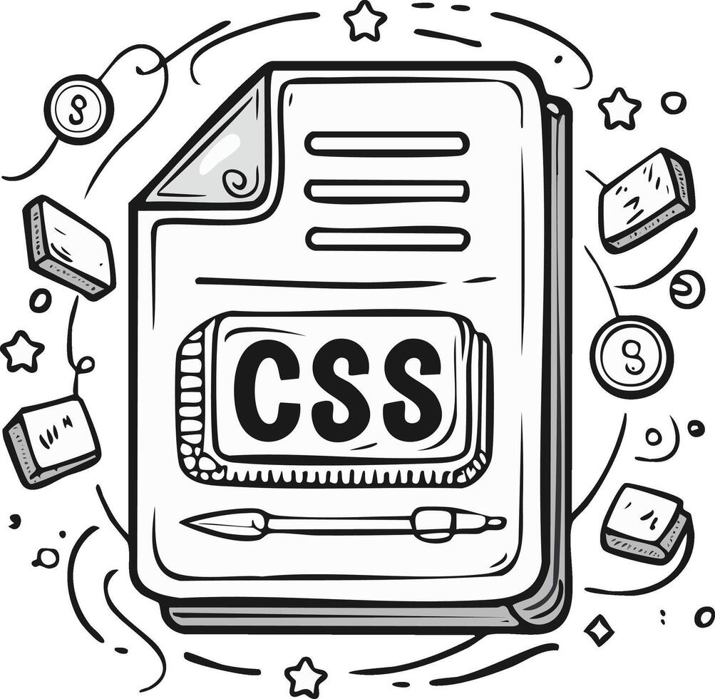 Illustrated CSS File Stack with Code Elements and Decorative Graphics, Coding Process Pro Vector