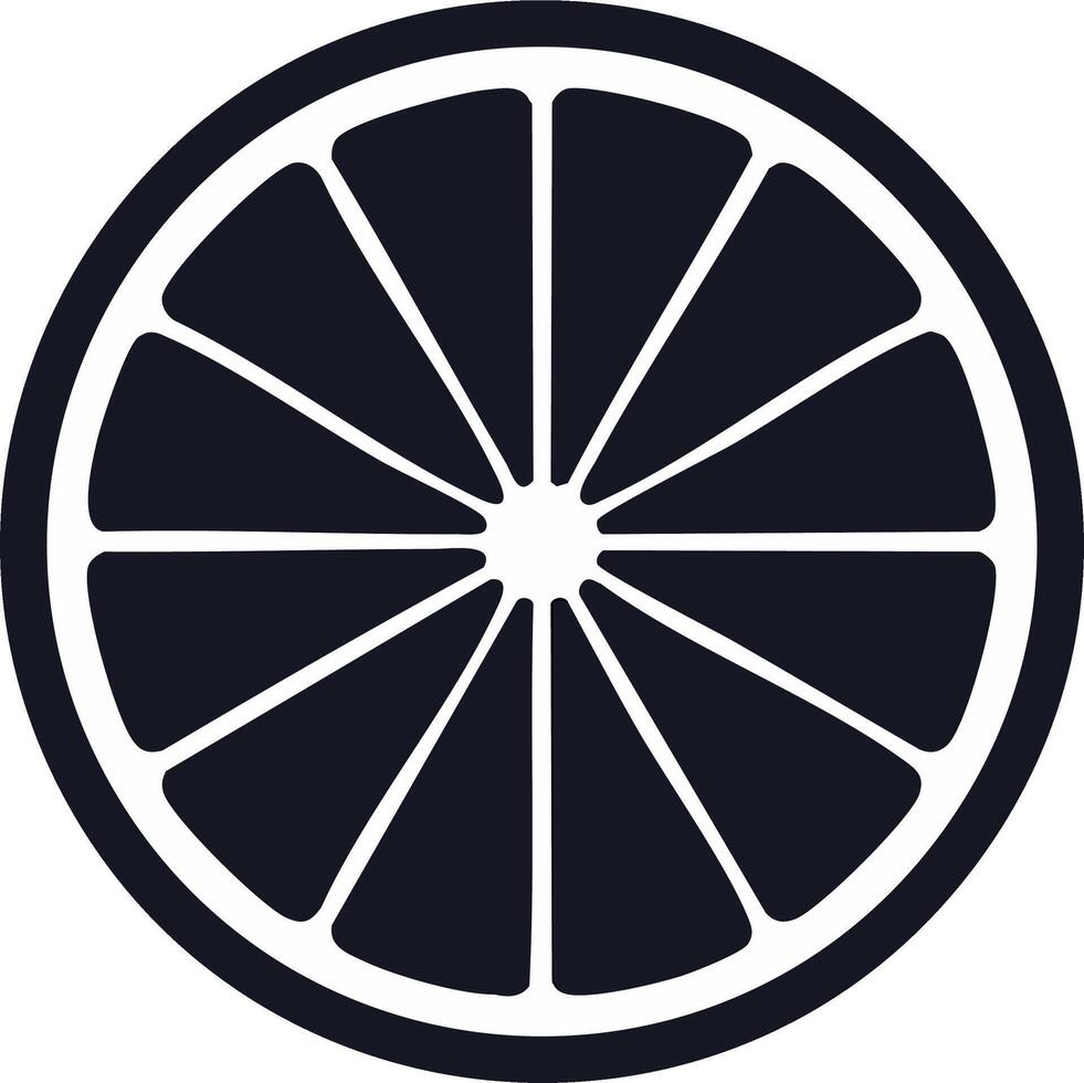Minimalist dark citrus fruit slice icon showcasing a circle shape with segmented segments for graphic design projects Pro Vector