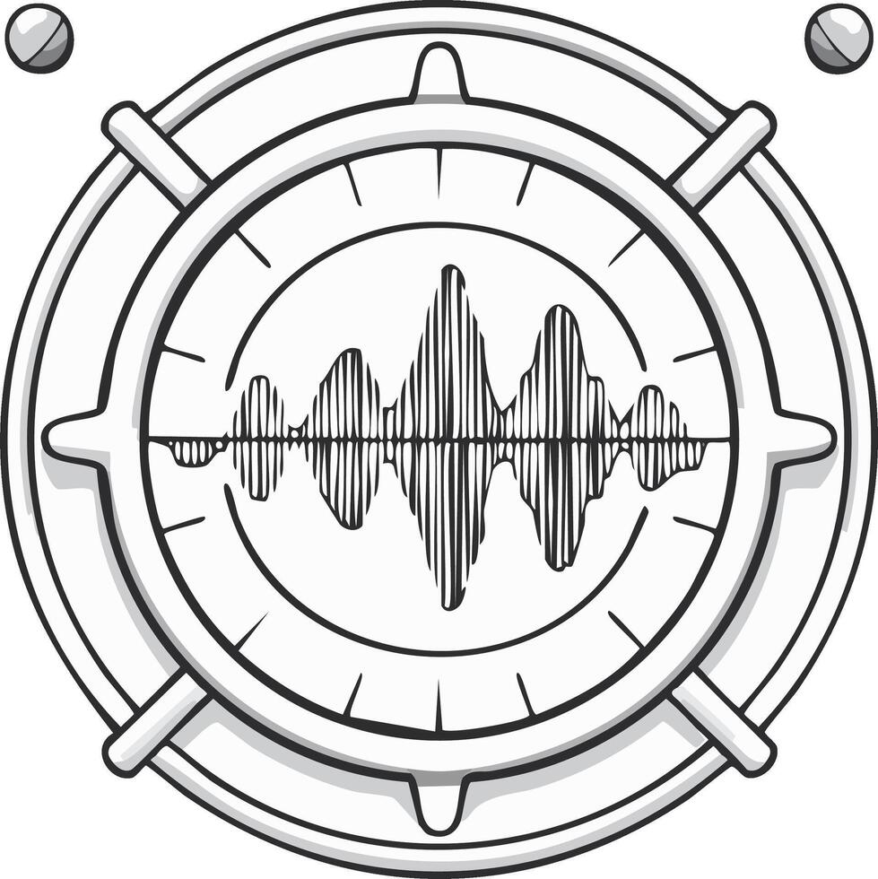 Monochrome sound wave display inside a retro circular meter interface Pro Vector
