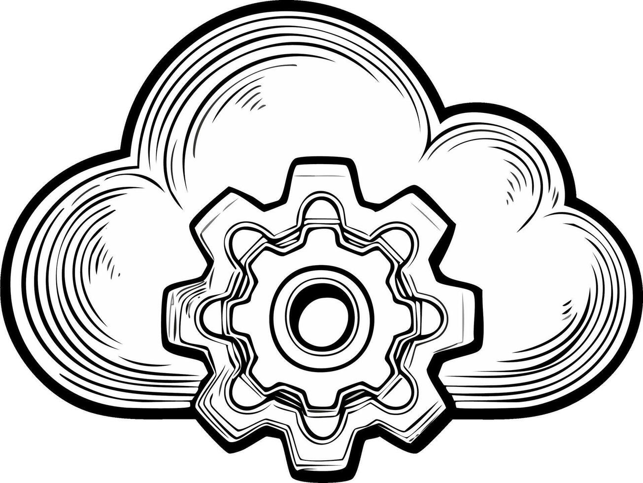 Cloud computing concept with gear element. illustration for technology design Pro Vector