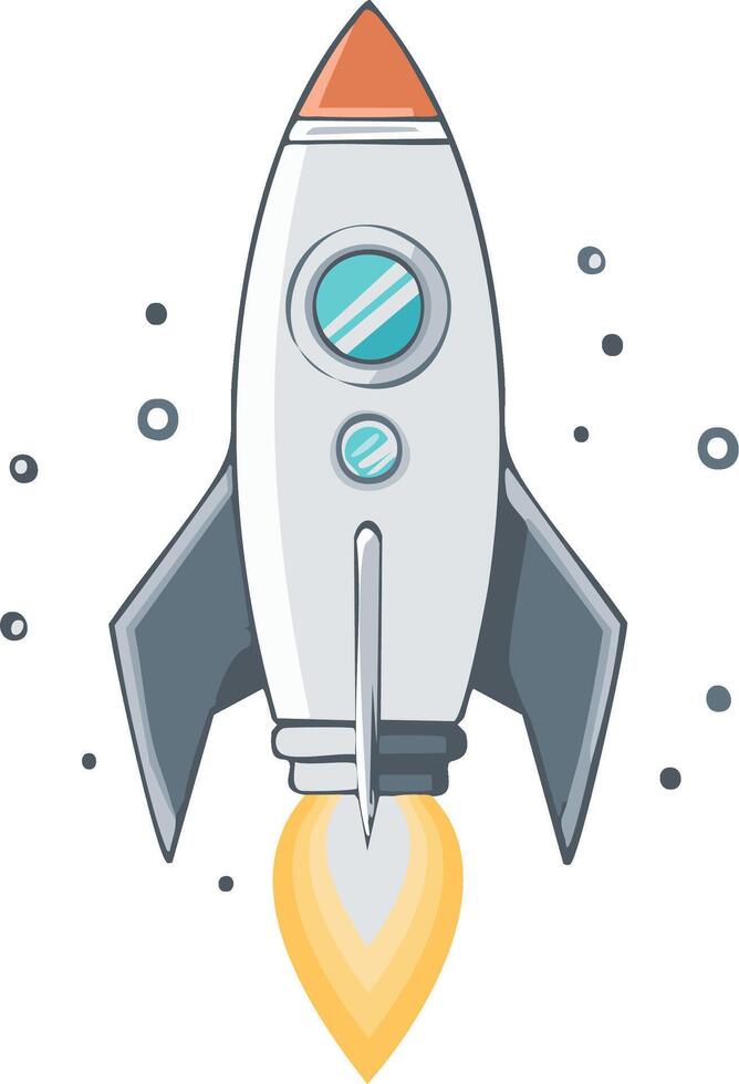 Modern style rocket ship launching with fiery propulsion and subtle space elements Pro Vector