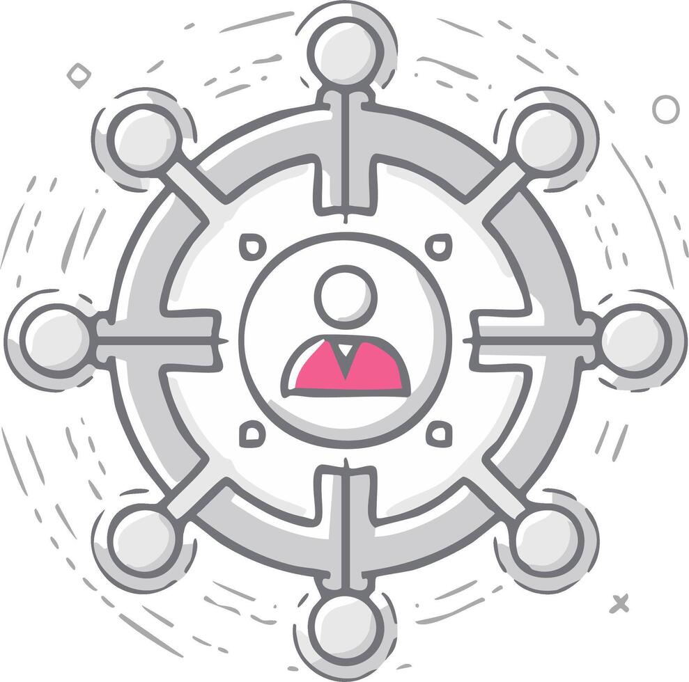 Centralized Human Network Diagram with Connected Nodes and User Icon Pro Vector