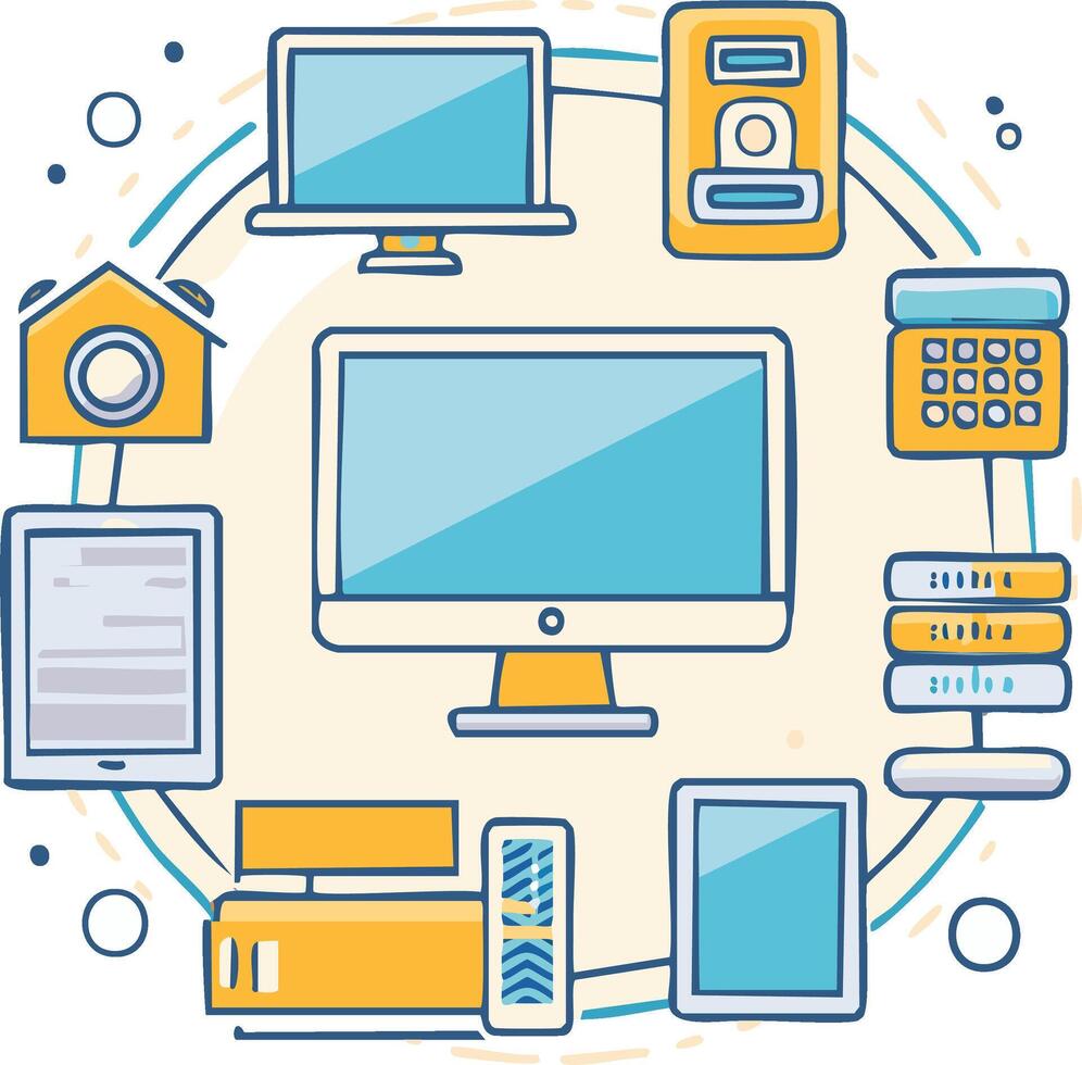 Internet of Things System Network Devices Illustration Connected in Circle Pro Vector