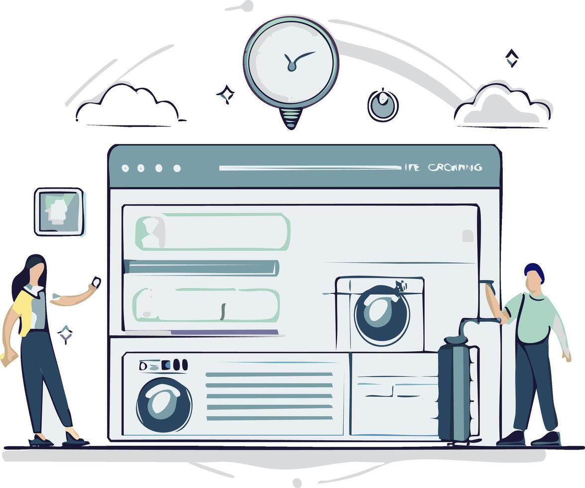 Online laundry service application concept with users managing smart washing machines via a web interface Pro Vector