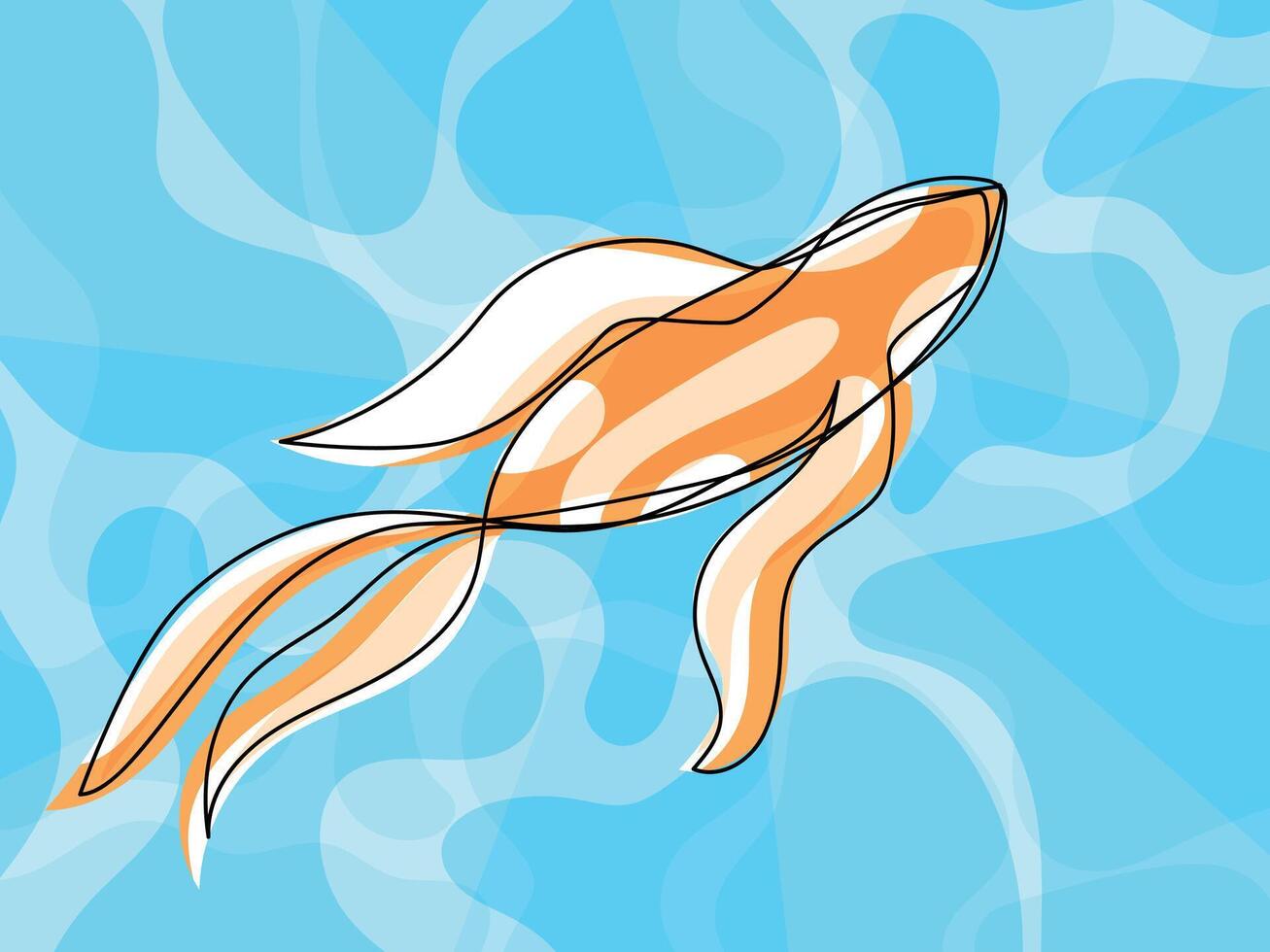 Horizontal background of carp koi in continuous single line style. Floral and abstract elements. One line drawing illustration. Pro Vector