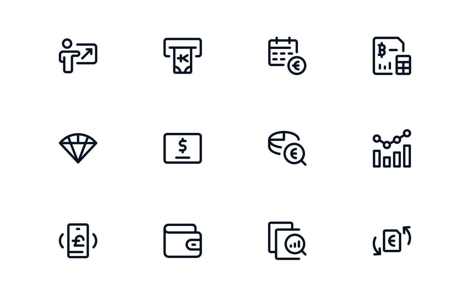 Finance Management icon set showing budgeting tools, financial calculators, and expense tracking for efficient financial control Pro Vector