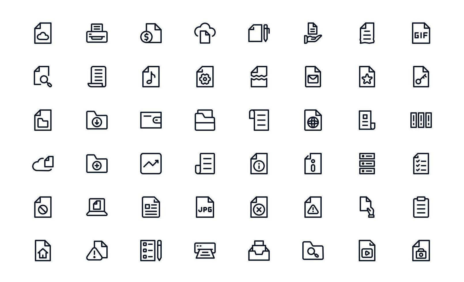 Document Processing and Workflow Management Icons. Essential File Handling, and Digital Record System Icon Collection Pro Vector