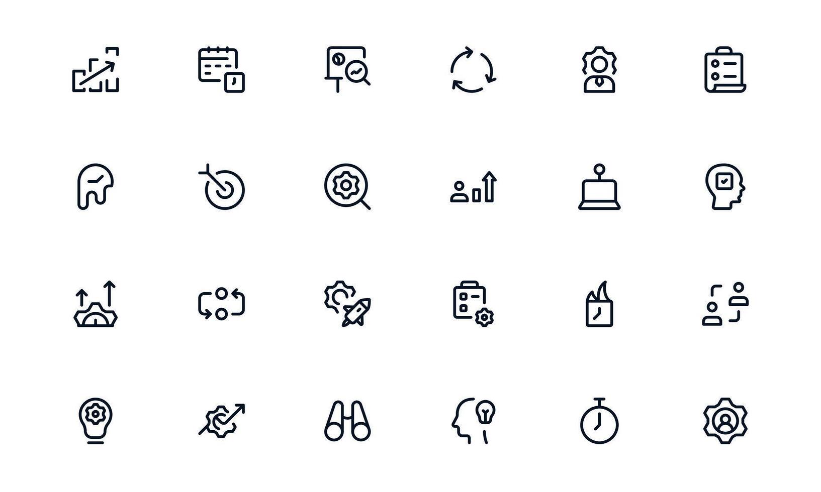 Productivity icon set illustrating target completion, workflow improvement, and time-saving techniques for effective management Pro Vector