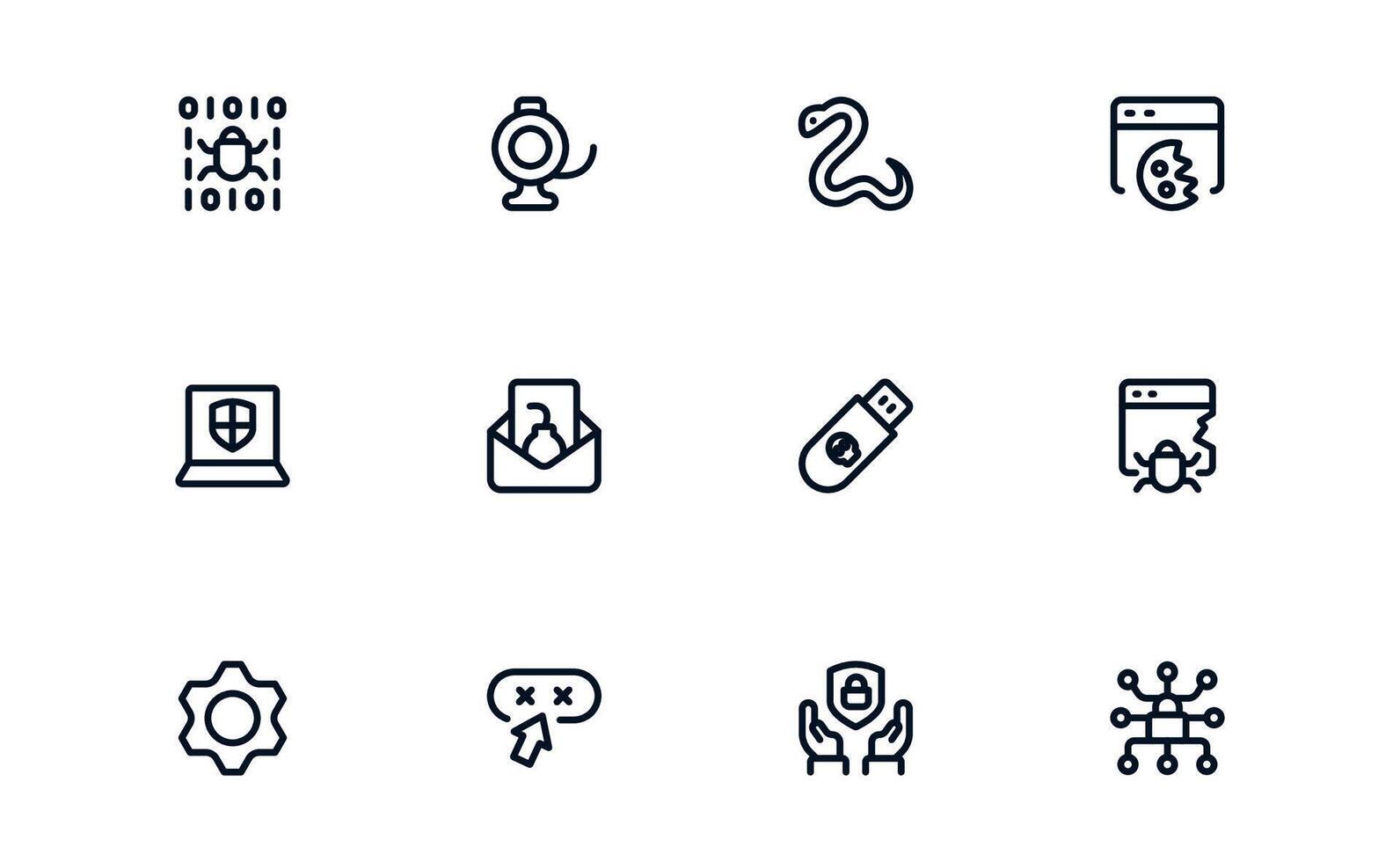 Security icon set depicting monitoring tools, secure operations, and safety management processes Pro Vector