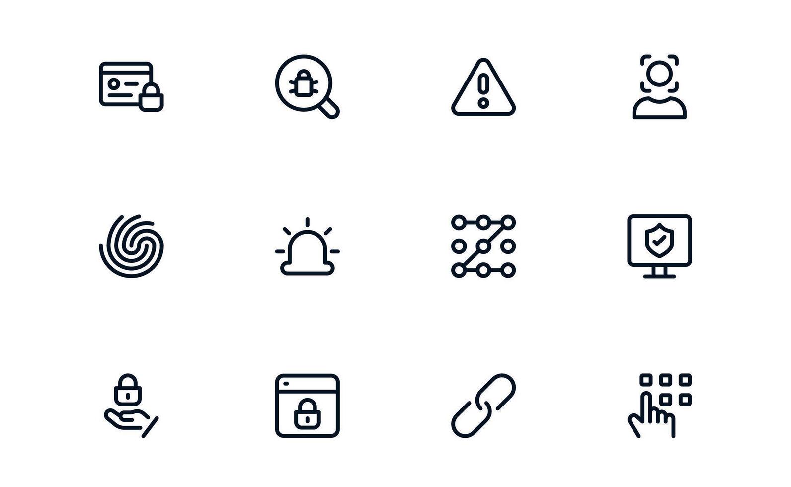 Security icon set representing secure devices, antivirus tools, and network protection solutions Pro Vector