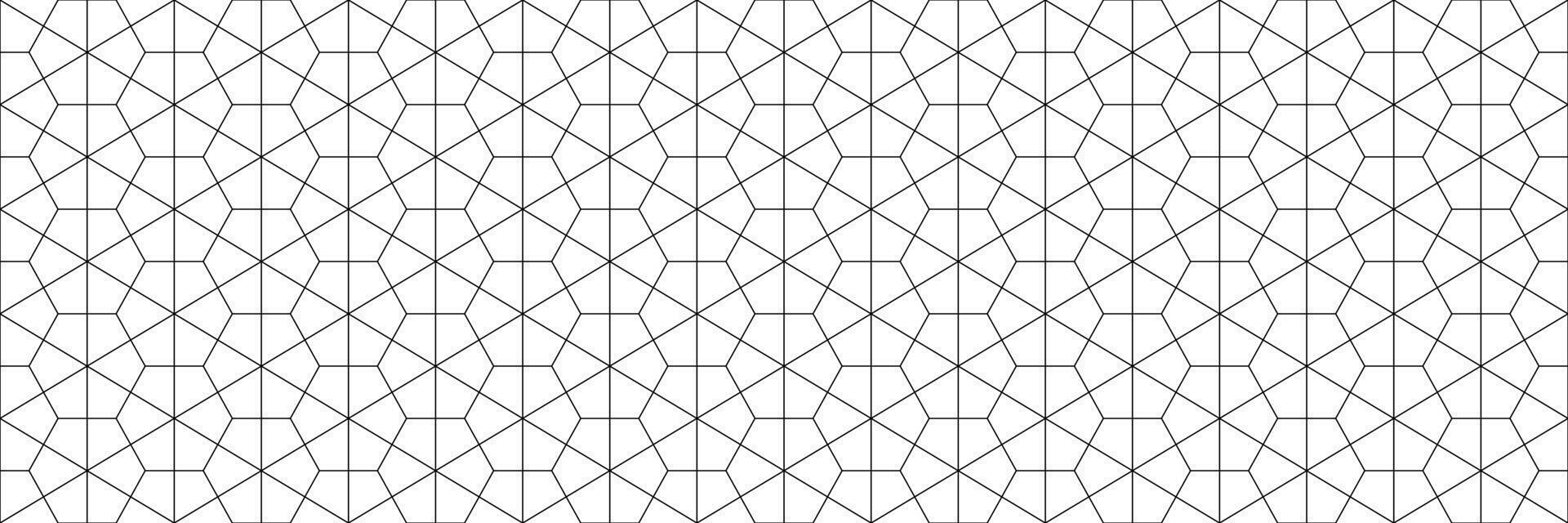 horizontal seamless hexagon and triangle black line pattern on white for design and background. Pro Vector