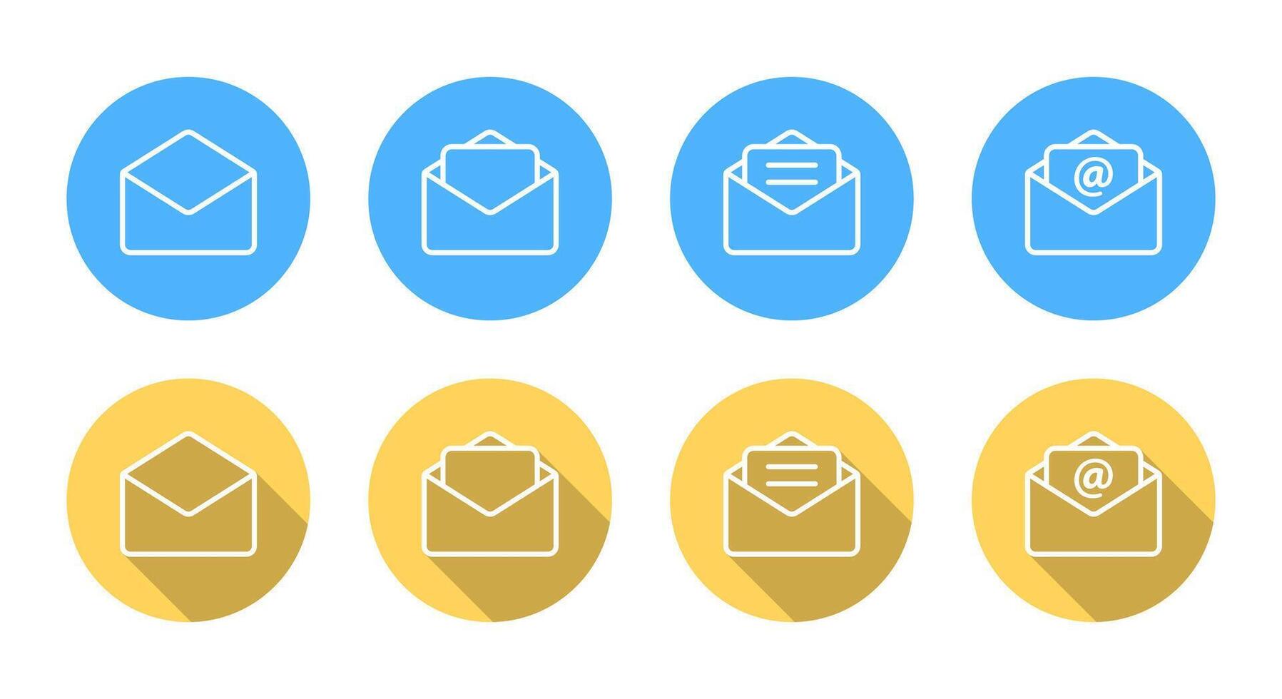 Email envelope line icon with long shadow. Open mail with letter and mention symbol for message Pro Vector